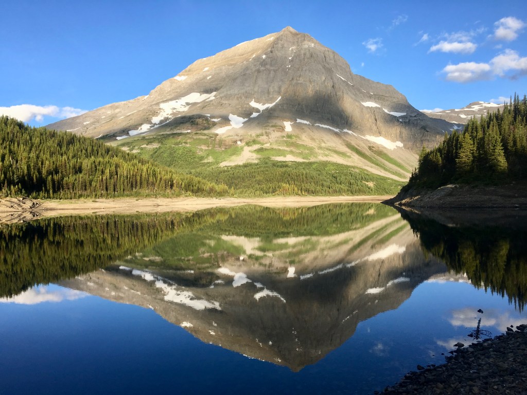 From the Upper Kananskis Lakes parking lot, you’ll walk along the trail that follows the lake for roughly 5km or so. Many other hikers will branch off for the Rawson Lake Trail early on, however, do not take this trail and make sure to keep following along the lake. After roughly 5km (maybe a bit more), you need to branch off on a trail to the left that heads towards Hidden Lake. This can be easy to miss, so keep your eye out. We used maps.me to make sure we didn’t miss this junction and it was very helpful. From here, you will follow the trail to Hidden Lake. We read that this trail can have some bushwhacking, but we found it fairly straight forward to follow. We also read that the trail can be very full of mosquitos and that part we did unfortunately find true! Yuck! Make sure to pack your bug spray.