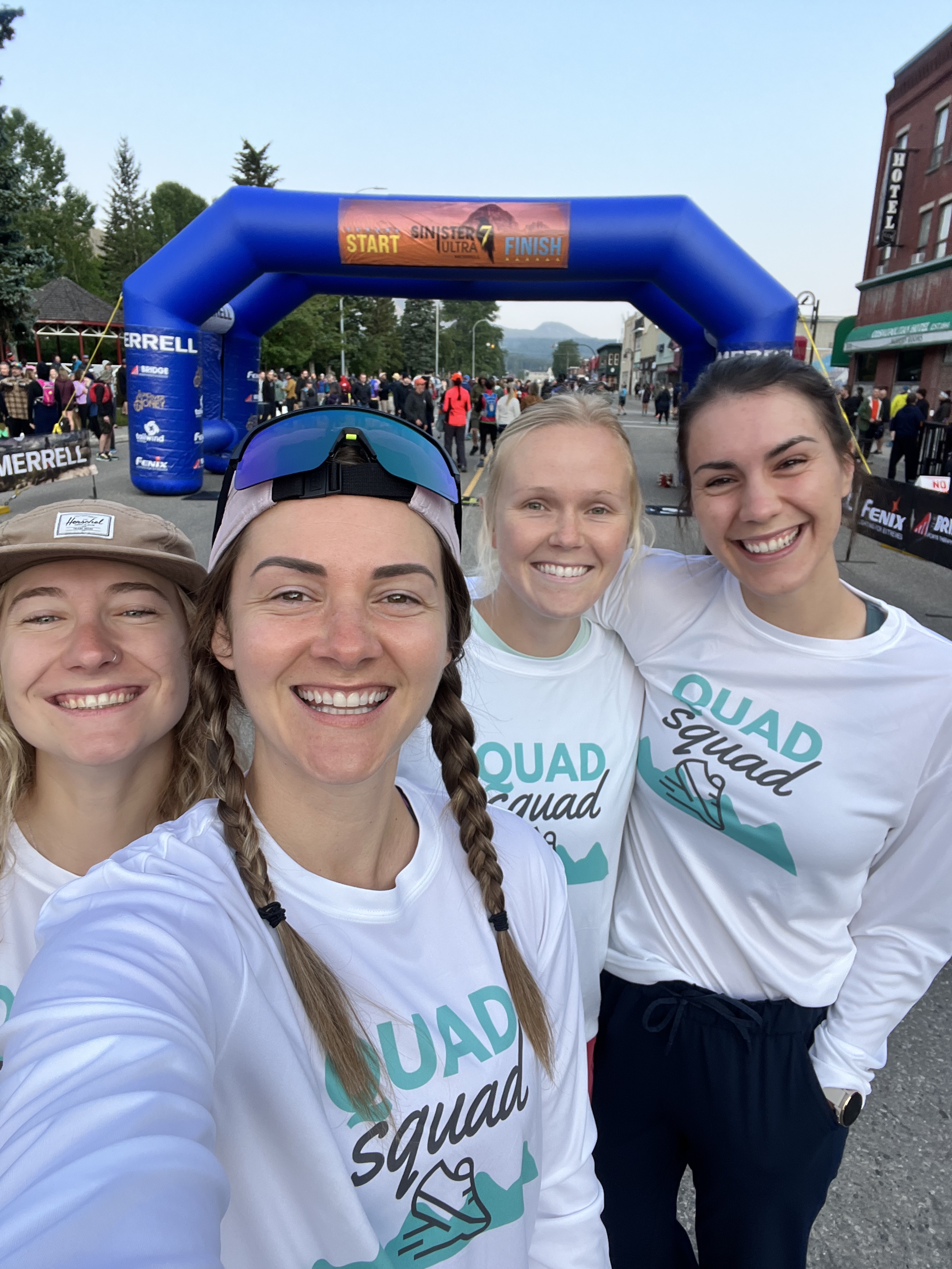 The Sinister 7 Ultra event holds a very special place in my heart. The 50 mile was my first official ultramarathon race in 2021, and last year I went back to crew my friend as she completed the 50 mile for herself. Each year I always thought to myself how fun it would be to do the 100 mile relay with some friends. Well finally this year, a group of us decided to sign up and go for it. Myself and my friends Rachel, Sarah, and Nikki made up what we called the Quad Squad. 4 girls, 100 miles, with a whole lot of fun in store. I counted down the days for a long time out of excitement, and finally it was time to make the annual trip down to Crowsnest Pass.