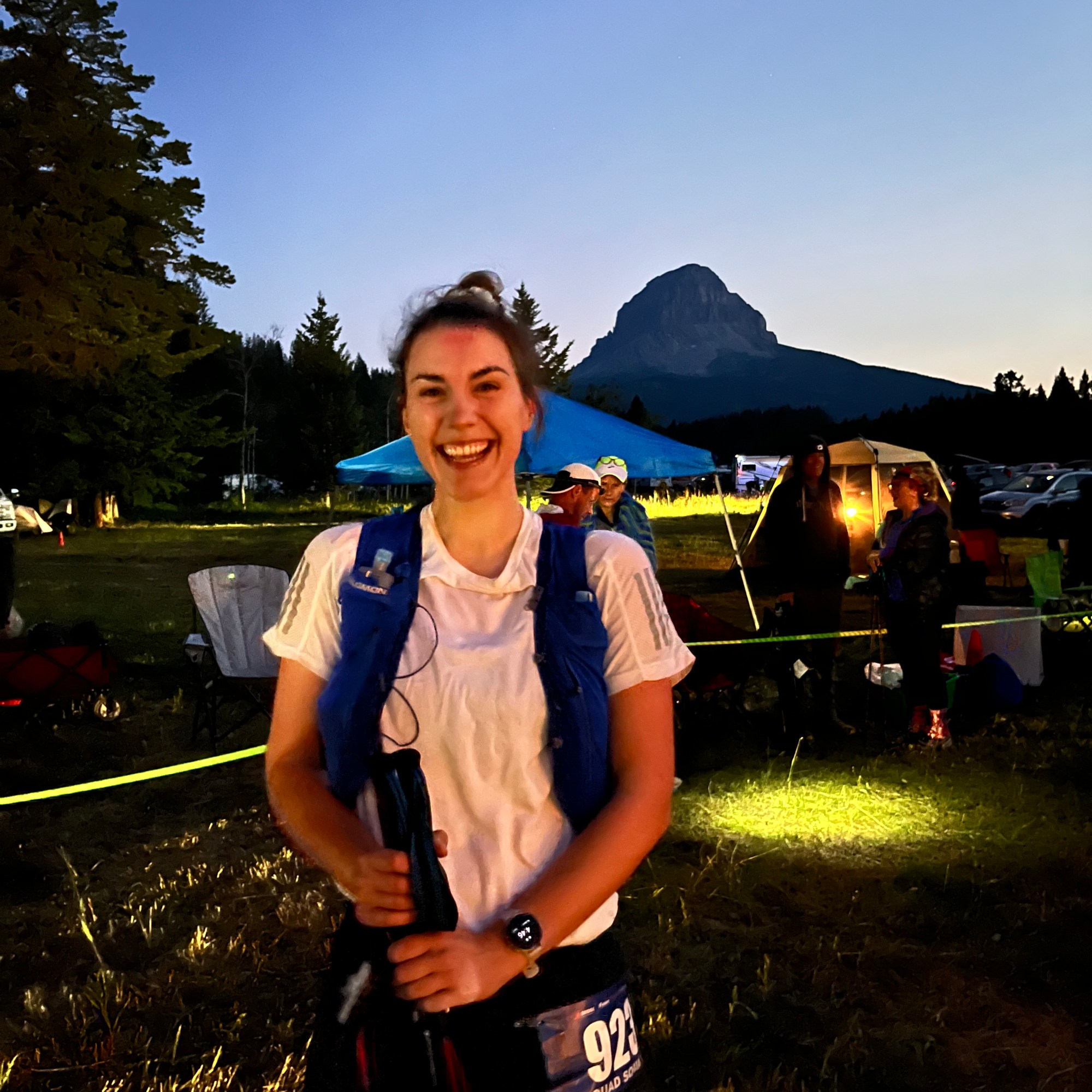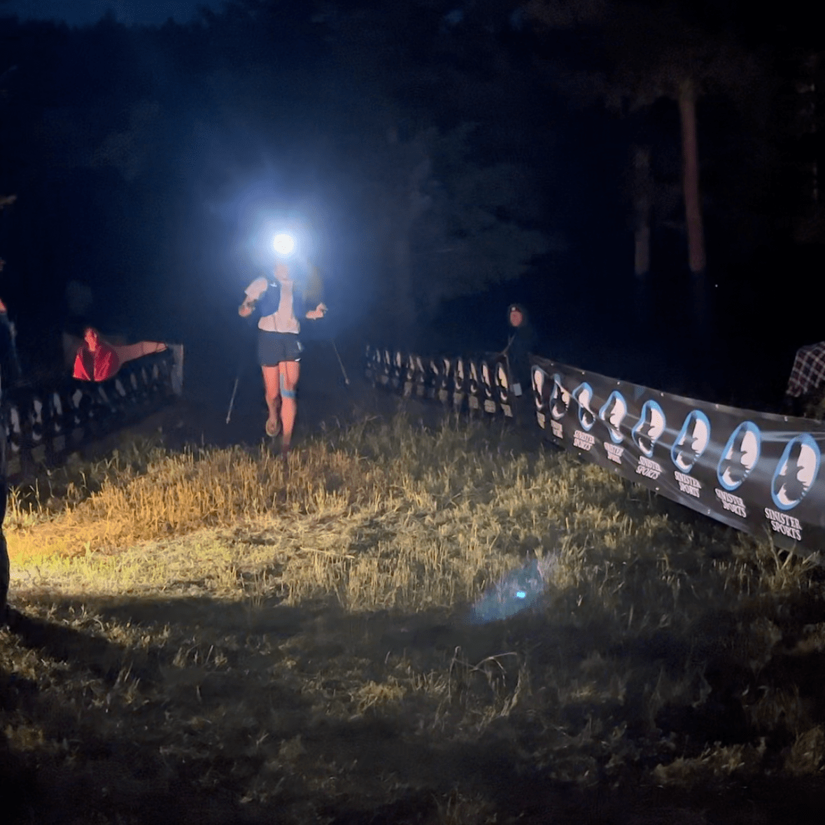 Leg 6 is a giant loop, so around 4:30 am we were back at the same aid station waiting to see Rachel’s headlamp bobbing towards us. Soon enough, she came running in towards Sarah and as she tagged her out for the last leg Rachel said “we’re in third place”, so off Sarah charged. It turns out that Rachel saw the third place team member stopped at an aid station, so she picked up the pace and didn’t stop to put some distance on them. The fact that she managed to do this on a leg like leg 6 is crazy! It’s an absolute monster of a leg, but she is so strong!
